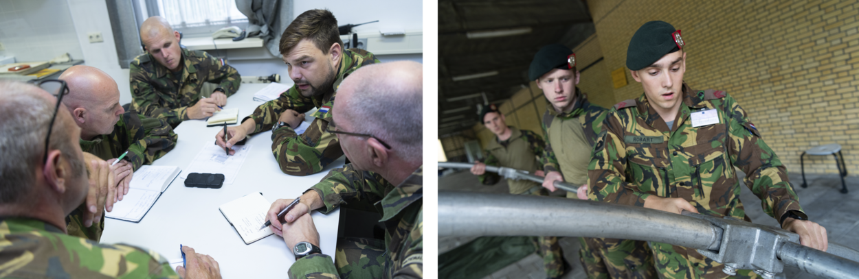 Omdat het een oefening betreft, krijgt Veldman een uur als extra ‘leermoment’. Zijn commandant observeert hem tijdens deze oefening en helpt hem nu de juiste vragen te stellen aan de overste die de bevelsuitgifte doet. Met name over de situatie ter plekke. Inmiddels is duidelijk dat het Natrespeloton naar Leusden moet om het MatlogCo te beveiligen. “Er waren aanwijzingen dat terroristen het complex wilden aanvallen om wapens buit te maken”, licht Veldman toe.