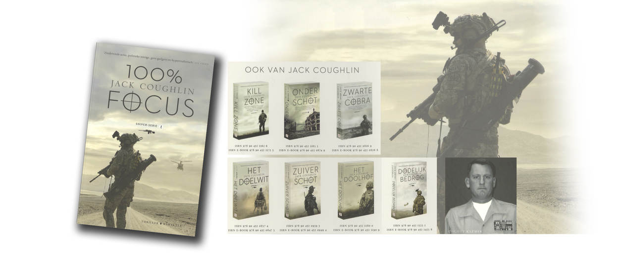 Schrijver Jack Coughlin was elite-scherpschutter bij het Amerikaanse Korps Mariniers en vocht onder andere in Irak. Toen hij zijn geweer aan de wilgen hing, wierp hij zich op een schrijverscarrière. Niet zonder succes, want 100% Focus is het 8e deel in zijn sniper-serie. In deze actiethriller bezoekt hoofdpersoon Kyle Swanson de uitvaart van een goede collega die is gedood bij een drugsinval. Er wordt een bomaanslag gepleegd met vele slachtoffers tot gevolg. Wie achter de aanslag zit, is in eerste instantie onbekend. Niet lang na de aanslag ontsnapt Swanson zelf aan de dood als iemand in Londen een handgranaat naar hem werpt. Samen met collega Luke Gibson komt hij op het spoor van een terrorist en drugsbaas die bekend staat als ‘De Prins’.