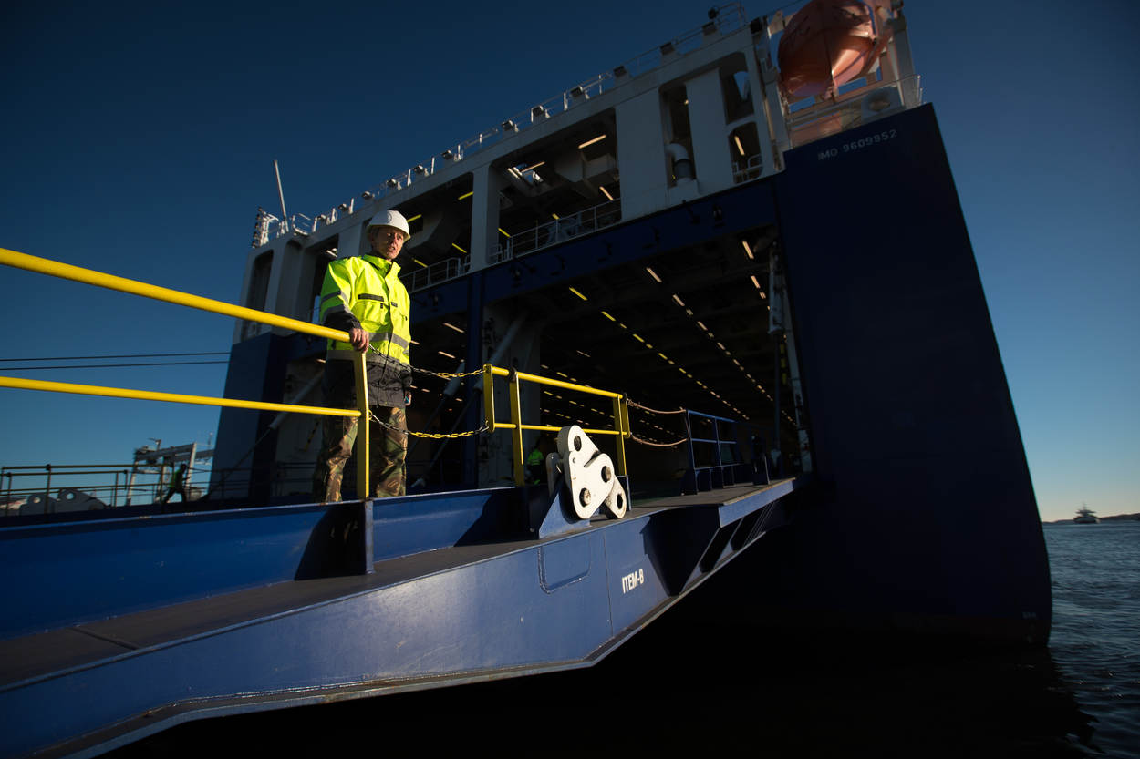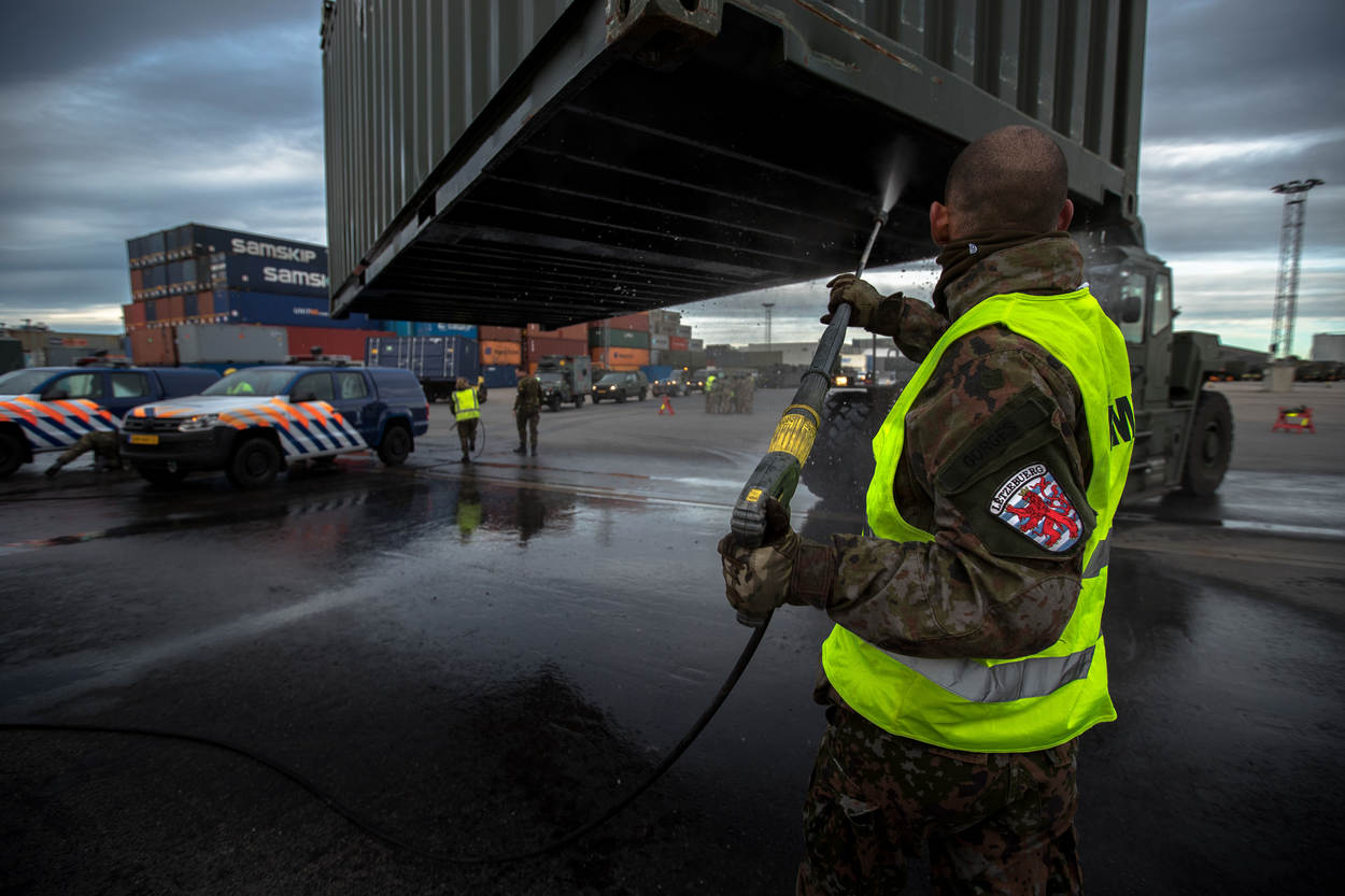 MOVCON: altijd, overal. Ook in Noorwegen houden de transportspecialisten in de gaten of het ontladen van de Ark Germania – een zogenaamde roll-on/roll-off carrier – gladjes verloopt. Nederlandse, Luxemburgse en Tsjechische militairen rijden 350 voertuigen van de boot, die vanuit Eemshaven was vertrokken.