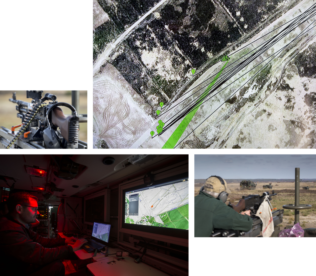Tijdens een proef schiet een MAG-schutter met scherp. De voertuigen met de sensoren op het dak zijn in de buurt, waardoor er veel waardevolle informatie vrijkomt voor de experts van zowel Microflown als Defensie. Zij zien de realistische sensordata meteen op hun laptops.