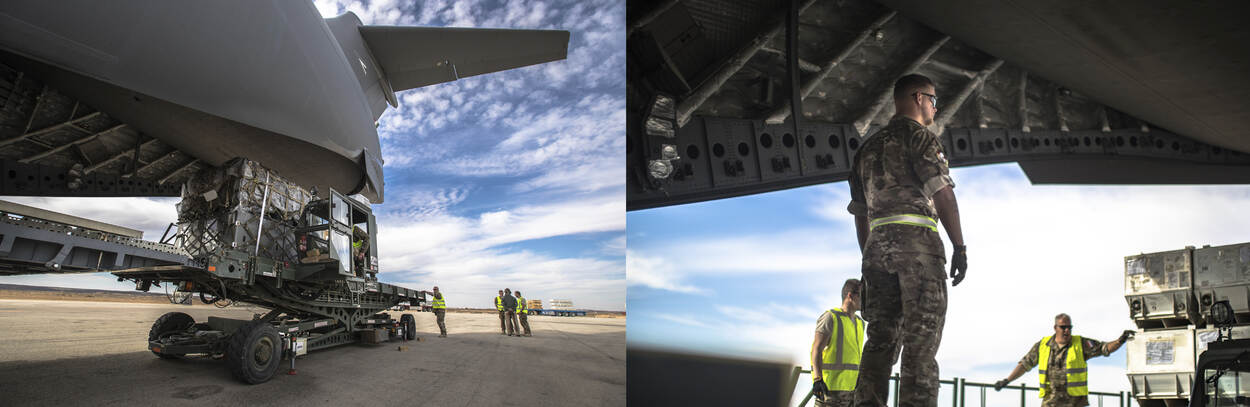 “Verder sta ik in contact met het vliegveld en ben ik aanspreekpunt voor de Directie Operaties”, vervolgt Rob in de buik van de C-17. “Er moeten enorm veel papieren worden opgemaakt en dat brengt een aardige werklast met zich mee. En al doe ik dit werk al jaren, ik kom nog steeds verrassingen tegen. Ja, ook hier in Jordanië. Een systeem om een boordwapen van een F-16 te laden had ik nog nooit eerder gezien.”