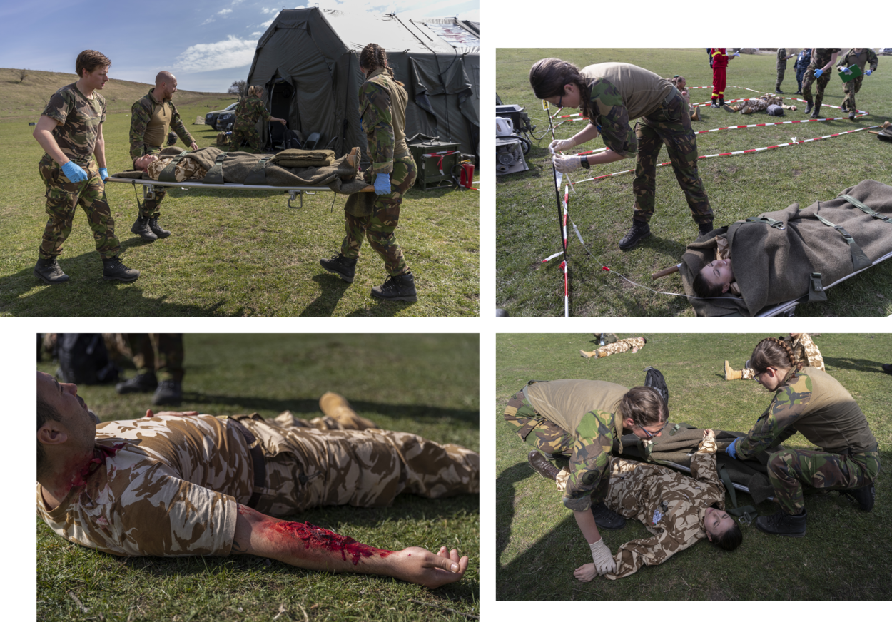 Kapitein-arts Tim rent er van de een naar de ander. Nu zijn MTF ineens 6 slachtoffers moet oplappen, is het zaak koelbloedig triage toe te passen. Bij een militair die ‘slechts’ een gezicht vol granaatscherven heeft, is hij duidelijk: “Die blijft lekker zitten in prio 3. Alleen af en toe kijken of hij niet is omgevallen.” Tim vertelt later op een rustig moment: “Ik merk in deze oefening hoe ik tijdens stress in een team functioneer. Hoe ik omga met uitzetten en controleren van taken.”