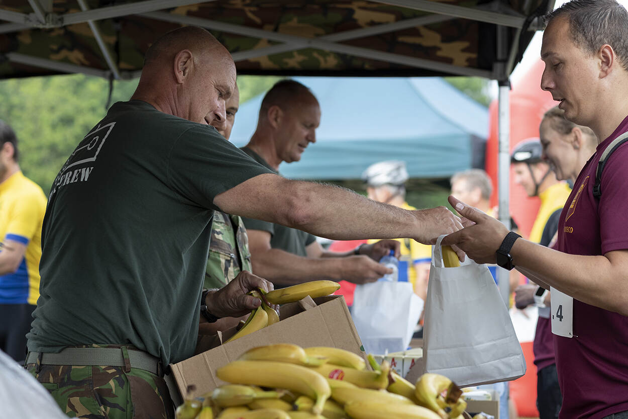 Maar ik heb een heerlijke dag. Ik voel me niet ongemakkelijk; klets gezellig met anderen en het parcours ligt in een supermooie omgeving. Doorgaans zie ik vooral de negatieve kanten van alles, maar ik merk dat ik door mijn therapie vooruitgang boek. Via het Dienstencentrum Bedrijfsmaatschappelijk Werk van Defensie ben ik nu bij Centrum 45 (zie kader ‘Goede doelen’, red.) in behandeling. Een verademing, na een sessie van anderhalf uur kan ik daar bijkomen en blijven slapen. Voorheen kon dat niet, dan moest ik nog anderhalf uur naar huis rijden en voor mijn 3 dochters zorgen. Daardoor zette ik onbewust een mentale rem op mijn behandeling. Het gaat langzaam de goede kant op. Misschien doe ik volgend jaar weer mee, dan als wielrenner. Dat ziet er toch makkelijker uit.”