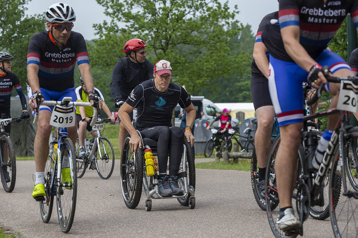 Sporten verbindt. Dat merkte ik als zwemmer tijdens de Invictus Games in 2017 en 2018 en voel ik elke dinsdag bij de zwemclub van het Militair Revalidatie Centrum. En nu dus op de Grebbeberg Masters, waaraan ik voor het eerst deelneem. ‘Het is een mooi evenement met een hoog reüniegehalte’, werd mij verteld. Nou, daar is niets van gelogen. Ik zie vooral veel bekenden uit de Wounded Insured Sick-gemeenschap. We spotten met onze handicaps; mooi vind ik dat. ‘Ik heb kramp’, riep laatst een zwemmaatje van me met 2 beenamputaties.