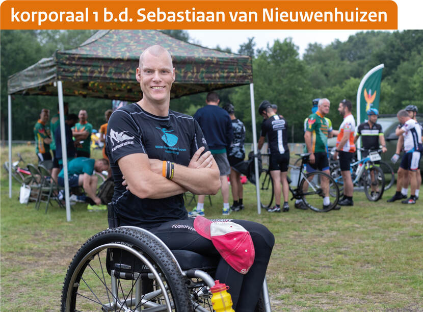 De sport vergroot mijn wereld. Al 3 keer deed ik mee aan de Invictus Games met handbiken, wheelen (racen op een atletiekbaan, red.), basketbal en zwemmen. Ik train veel bij het Militair Revalidatie Centrum, sport in de vereniging ‘De Gewonde Soldaat’ en zit als vrijwilliger in de commissie Sport & Evenementen van de Bond van Nederlandse Militaire Oorlogs- en Dienstslachtoffers.