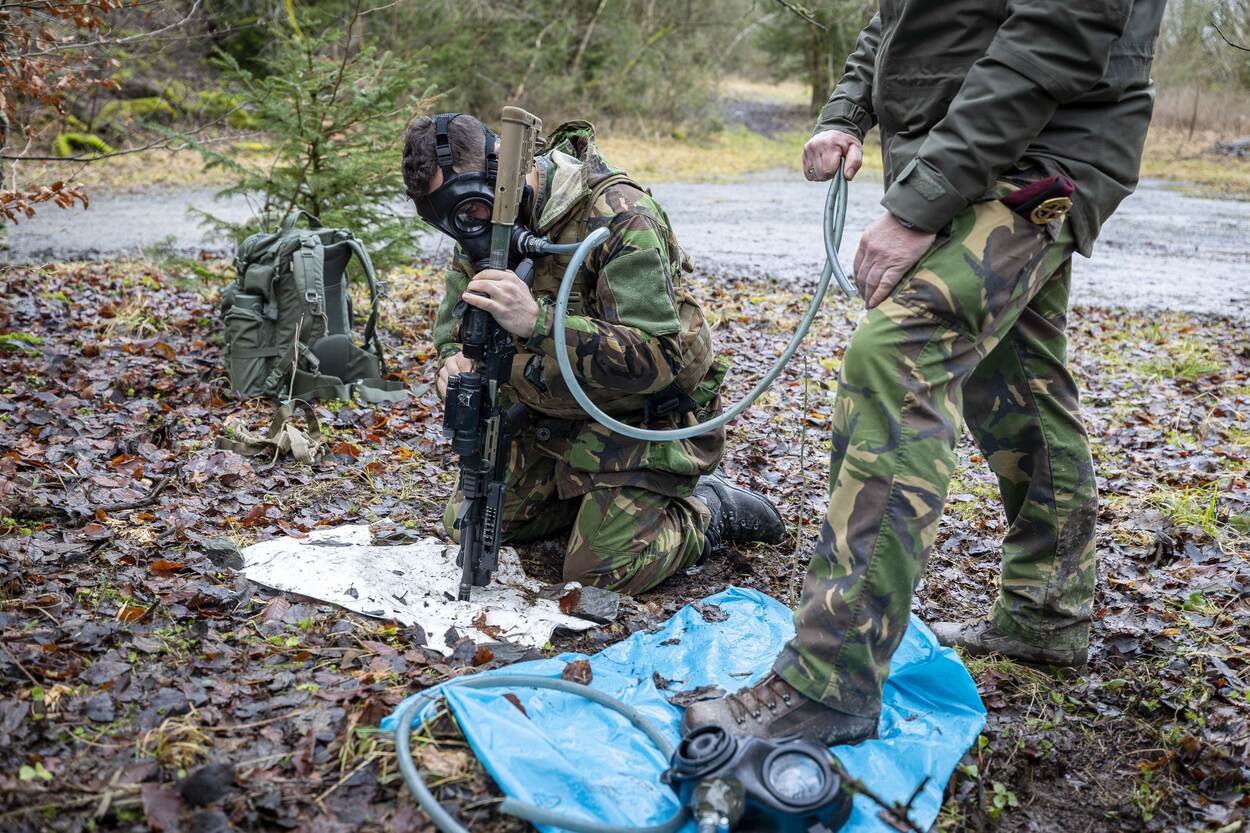 Een voor een moeten ze met een CBRN-masker op hun wapen demonteren en in elkaar zetten terwijl de luchttoevoer opeens wordt afgeknepen. De een raakt in paniek, de ander werkt stoïcijns door. Dan gaat het met bitje in en handschoenen aan een donkere tunnel in. De uitgang werpt een flauw strijklicht langs de rotswanden. Geblaf, lichten die aanschieten en een agressieve vent middenin de gang. Vechten of vluchten? Het zijn allemaal stresssituaties waarbij de individuele veerkracht op de proef wordt gesteld.
