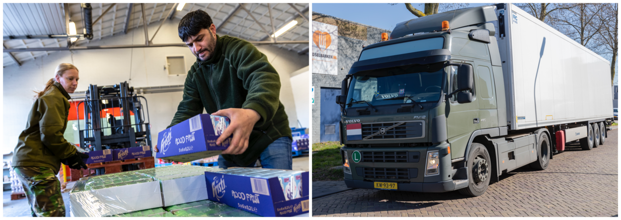 Defensie heeft in maart 35 pallets levensmiddelen aan 3 distributiecentra van de voedselbank geleverd. Landmachters reden de goederen naar Arnhem, Groningen en Tilburg.