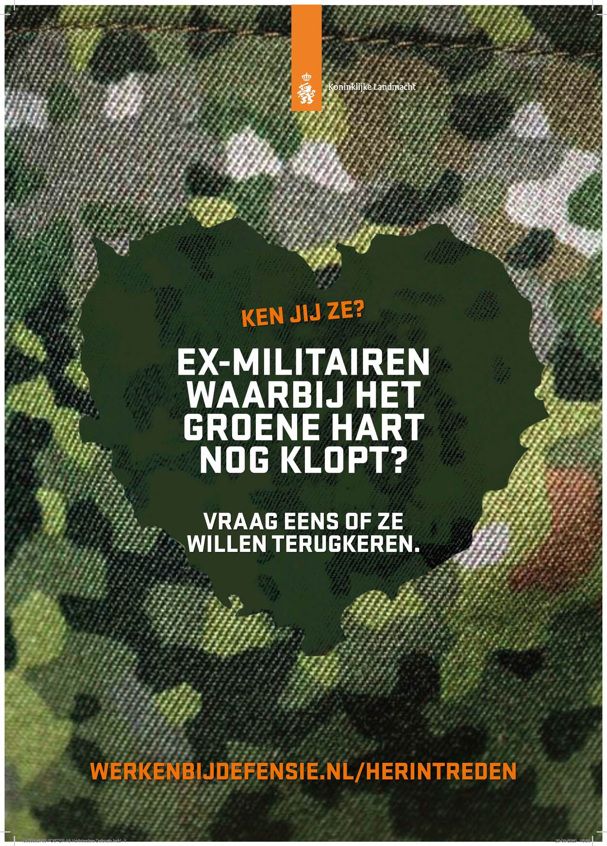 Aan de landmachtcollega’s wordt nadrukkelijk gevraagd om de optie herintreden in het eigen netwerk kenbaar te maken. De Schipper: “De onderlinge band tussen militairen is heel sterk. Ook wanneer men de dienst verlaat. Regelmatig worden juist deze band, de saamhorigheid, het kameraadschap genoemd als redenen voor terugkeer. Dus, wanneer je nog contact hebt met ex-militairen wiens groene hart nog steeds klopt: vraag eens of ze zouden willen terugkeren. Voor hen mogelijk de kans om het militaire leven weer op te pakken en voor jou de kans om weer met hen te mogen samenwerken.”