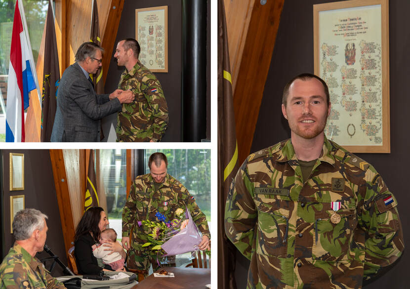 Van Raak was vorig jaar uitgezonden naar Irak waar hij deelnam aan de Combined Joint Task Force ‘Operation Inherent Resolve’. Binnen de afdeling Training, op het hoofdkwartier in Bagdad, was hij verantwoordelijk voor de selectie en de controle van verzoeken om trainingssteun. Deze werkzaamheden voerde hij zo voortreffelijk uit dat aan hem de ‘Defense Meritorious Service Medal’ werd toegekend. Wat de medaille-uitreiking extra bijzonder maakte was dat zijn vader kapitein b.d. Maarten van Raak hem het eremetaal mocht opspelden.