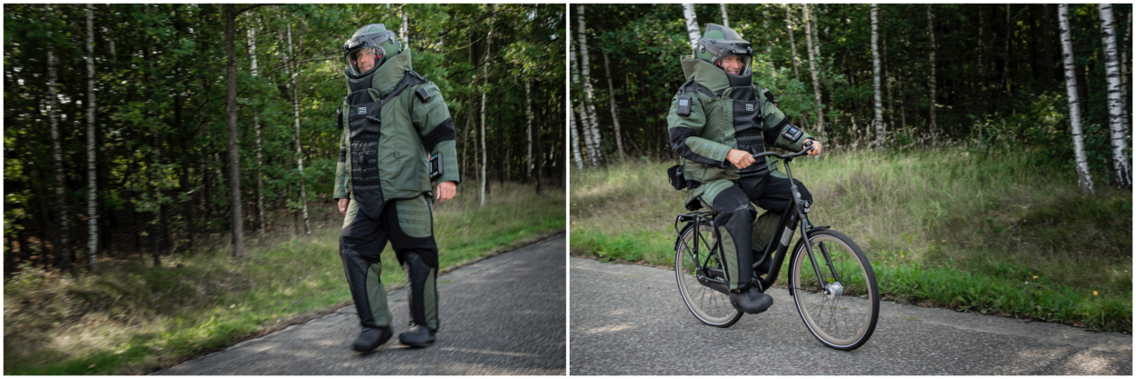 Een van de prettigste veranderingen voor de ruimer is ongetwijfeld het gewicht; van 40 naar 32 kilo. Dat lijkt misschien een klein verschil, maar werk maar eens een uur lang met een kind van 10 jaar op je rug. Dat is net zo zwaar. En niet alleen door het gewicht, maar ook door de betere pasvorm kunnen de EOD’ers zich veel makkelijker verplaatsen. Zelfs fietsen!