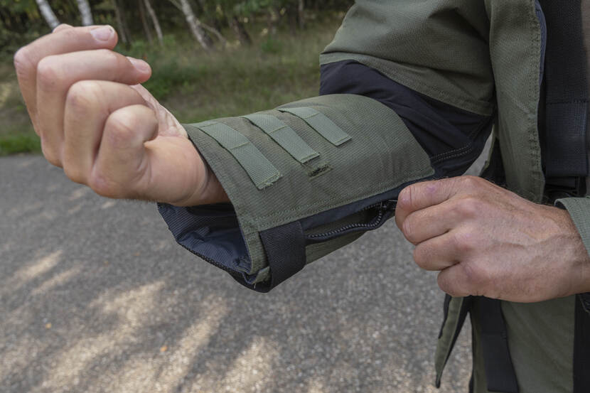 In de nieuwste jas zit bovendien een rits bij de onderarm. Handig als er een infuus moet worden aangelegd. De voorganger moest worden opengeknipt, maar met kevlar is dat geen sinecure.