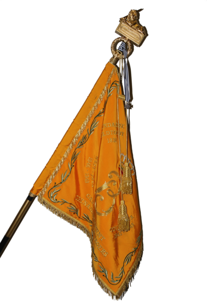 Het vaandel is de ‘vlag’ van een eenheid, geschonken door de koning. Erop staat de gestileerde eerste letter of het monogram van de naam van die vorst. Als de vlag is bevestigd aan een lange stok, heet het een vaandel. Eenheden te paard kregen een kleinere vlag met een korte stok: de standaard. De opschriften op vaandels worden altijd door de vorst toegekend. Vroeger namen de troepen de vaandels mee als ze ten strijde trokken. Tegenwoordig staan ze symbool voor saamhorigheid en trouw van de eenheid aan de vorst.
