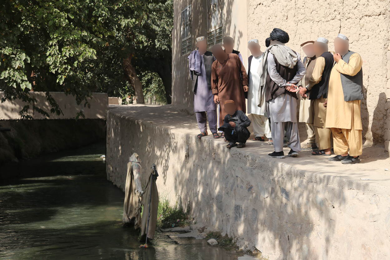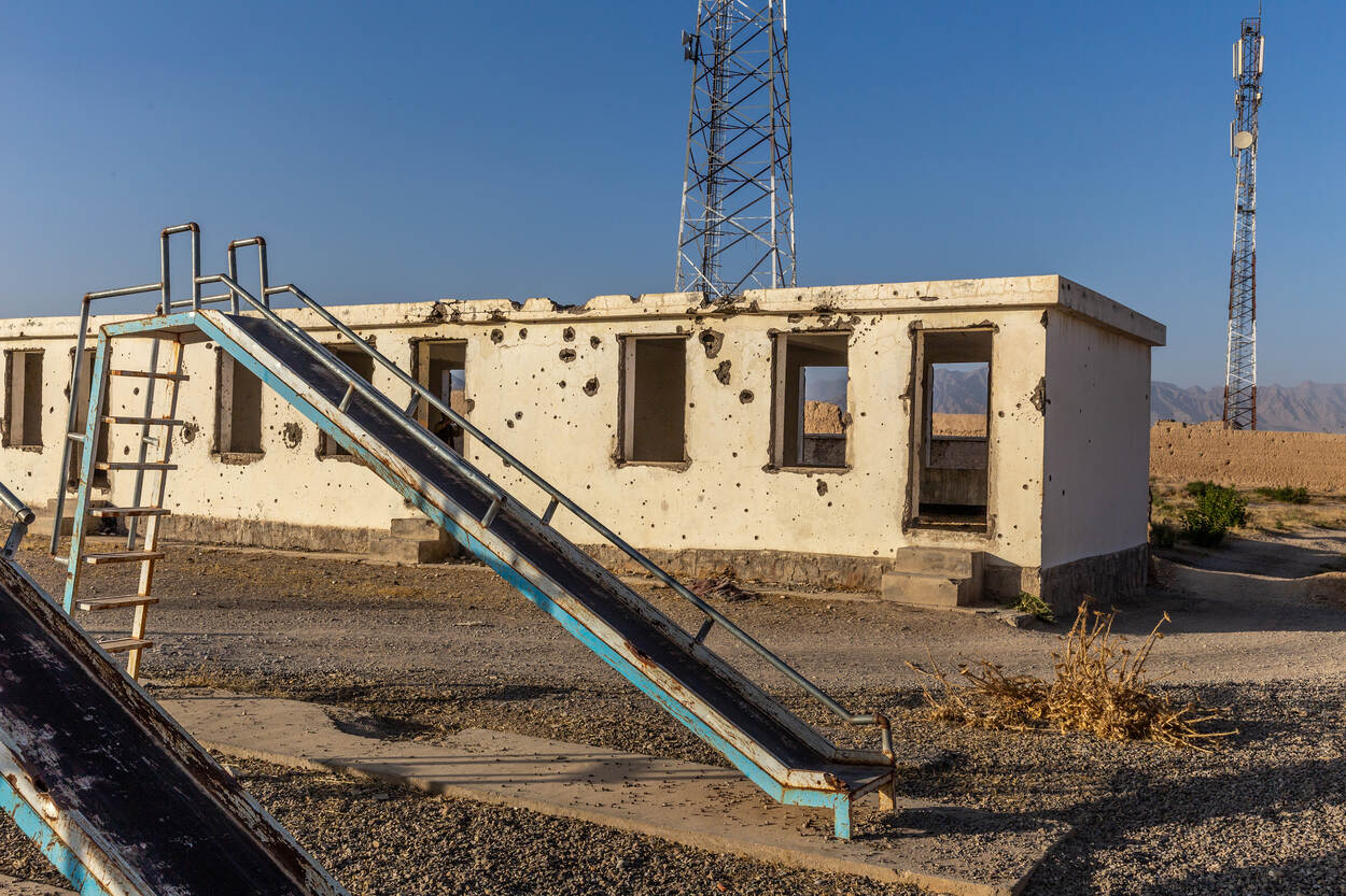De Timoschool in Shah Mansoor, gebouwd ter nagedachtenis aan de in Afghanistan omgekomen Timo Smeehuijzen, is zwaar beschadigd na aanvallen van de Taliban. Afghaanse mannen relaxen in de nabijheid van de Garamab Manda-brug.