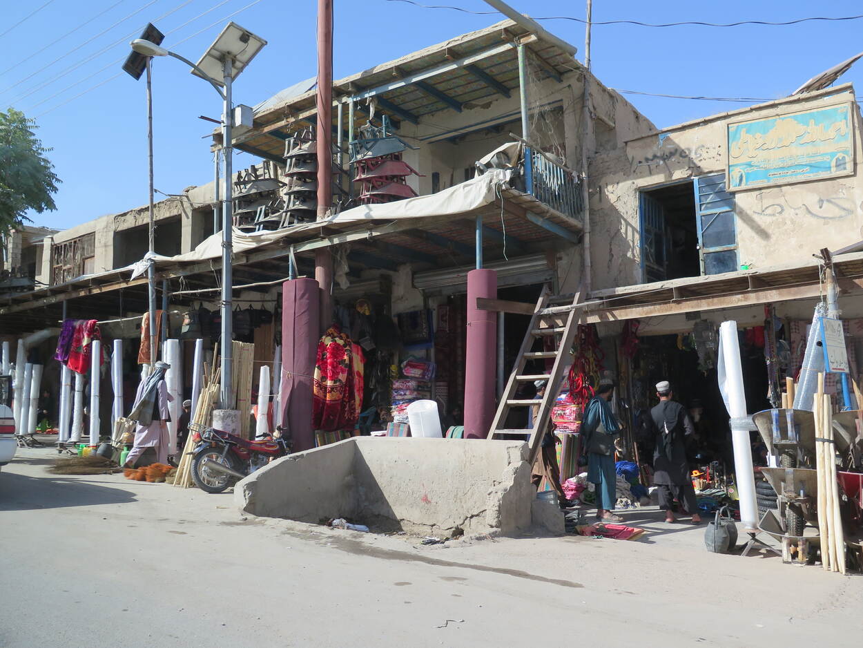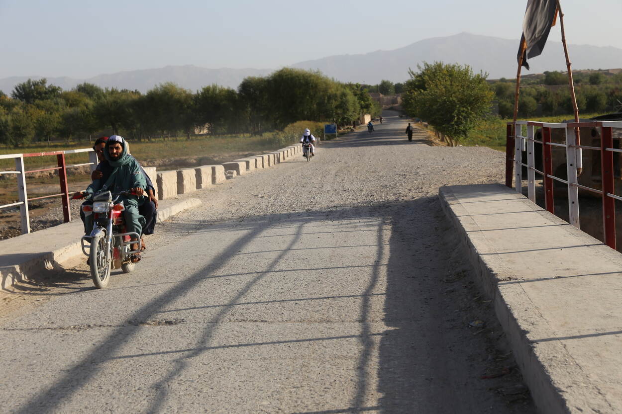 De Wanou-brug, net voor de asfaltweg naar Chora begint. Een winkelstraat in het centrum van Tarin Kowt.