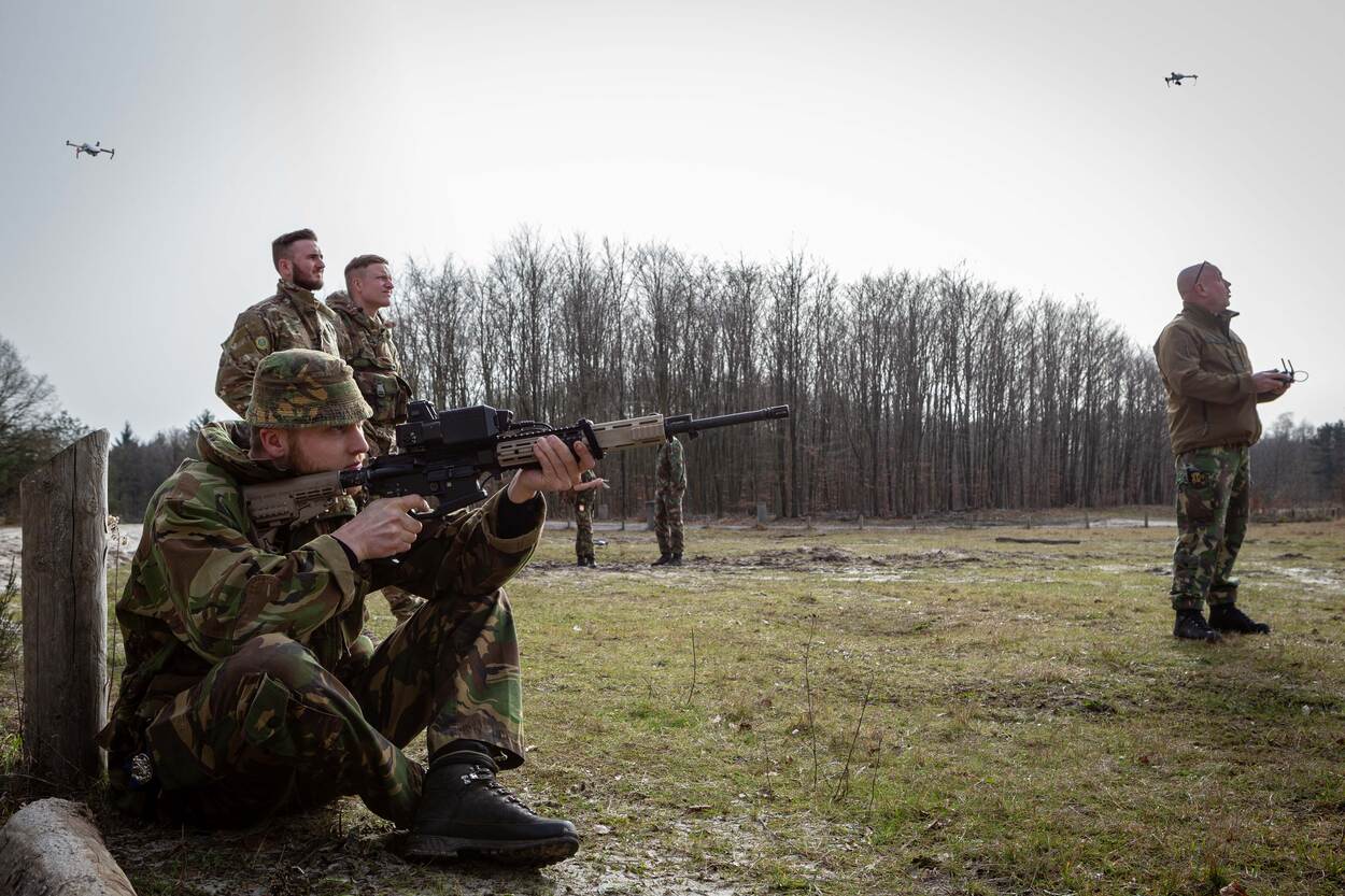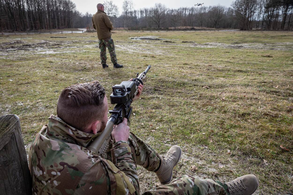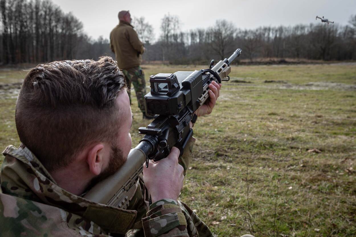 Onlangs nam onder andere het RAS-peloton (Robotica en Autonome Systemen, red.) van 42 BLJ de Smart Shooter mee naar Oostenrijk om het systeem uitgebreid te testen. Hiervoor hadden ze 60 drones ter beschikking en deze werden allemaal uitgeschakeld. De experimenten met het systeem zijn nu ruim een jaar gaande en Van Dijk is tevreden. Inmiddels zijn er nu zo’n 30 militairen opgeleid op de Smart Shooter. Zo kan elke eenheid kijken of en welke operationele toepassingen zij zien voor het systeem.