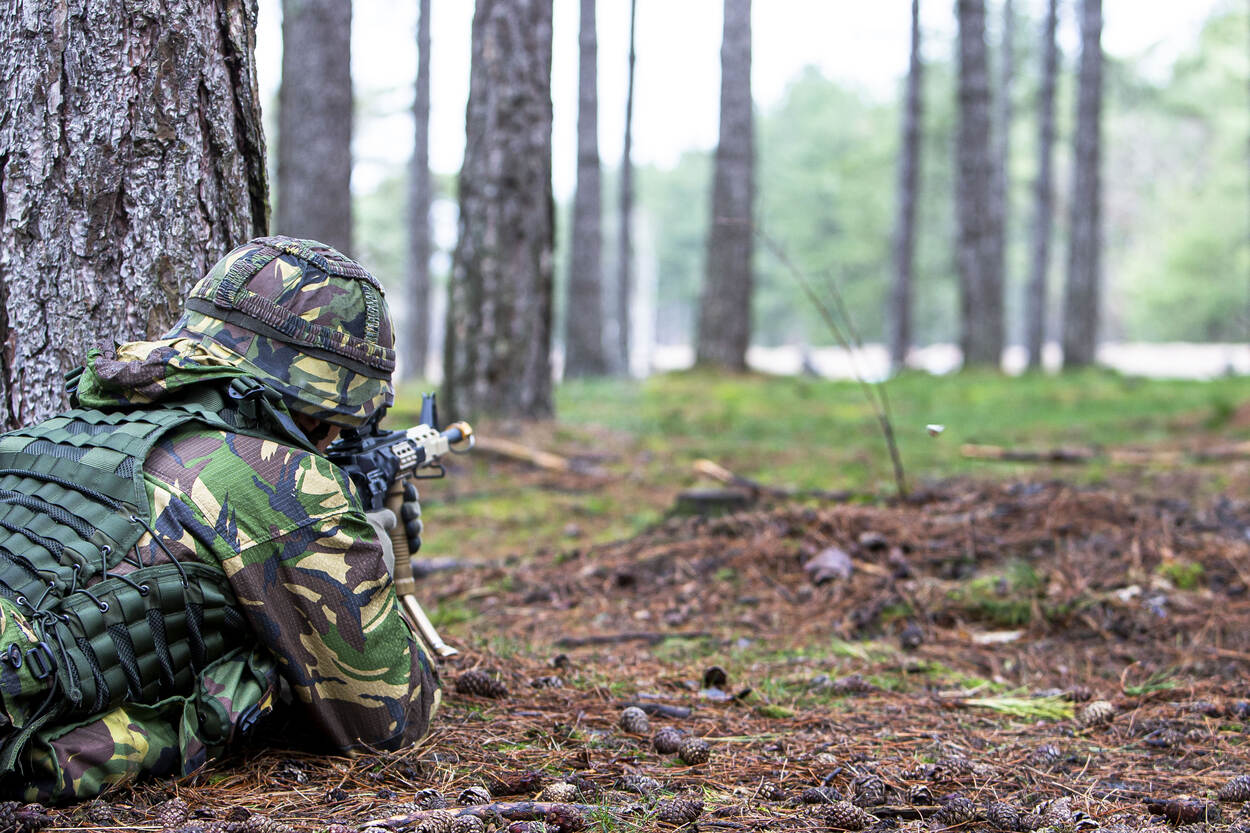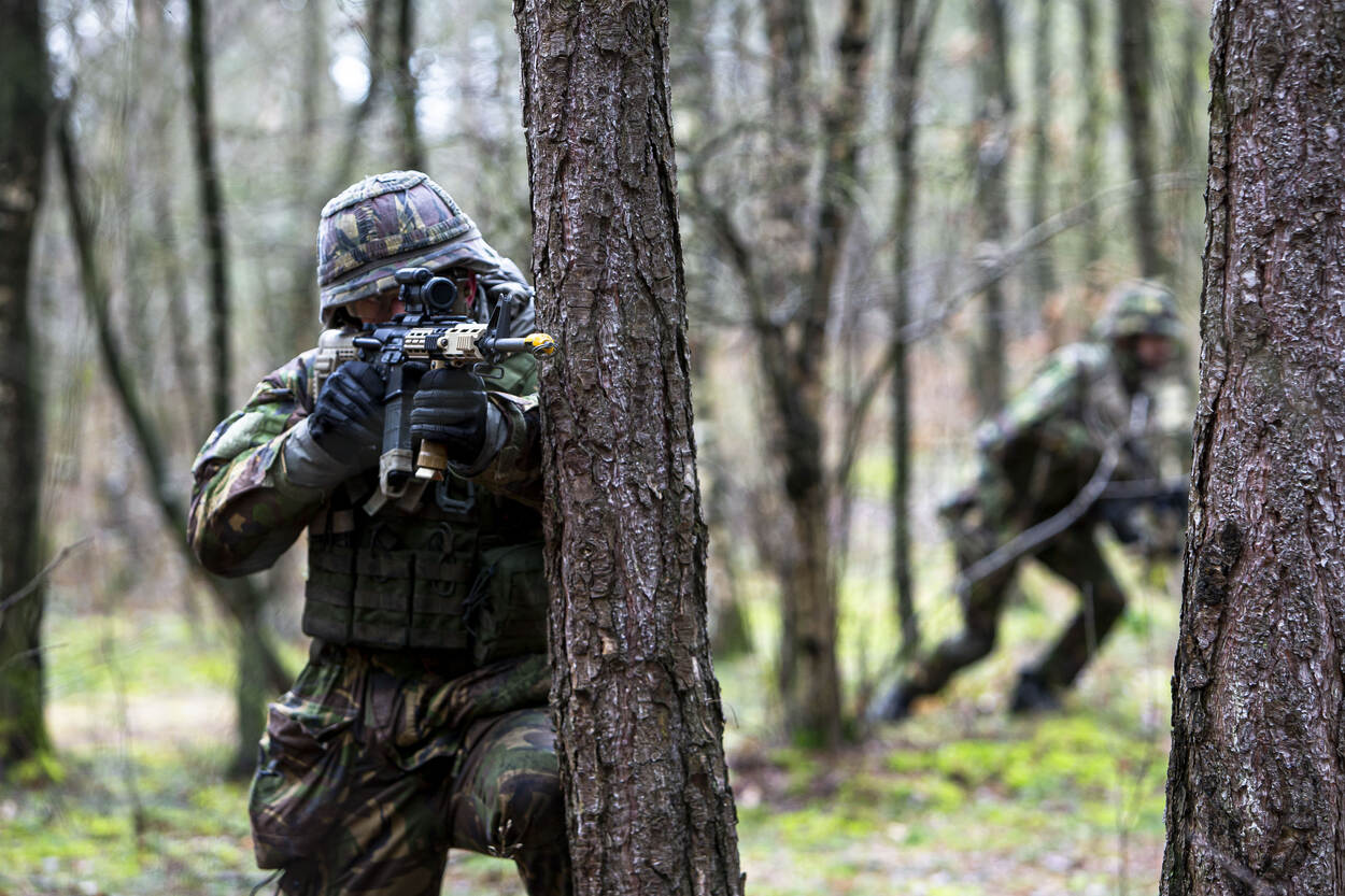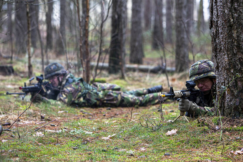 Terug naar de Oirschotse Heide. Met meegebrachte snacks in de hand bespreken de militairen de acties. “Contact? Meteen door de hoeven!”, klinkt het. Even verderop: “Maak je profiel zo klein mogelijk, anders gaan die patronen alsnog door je heen.”