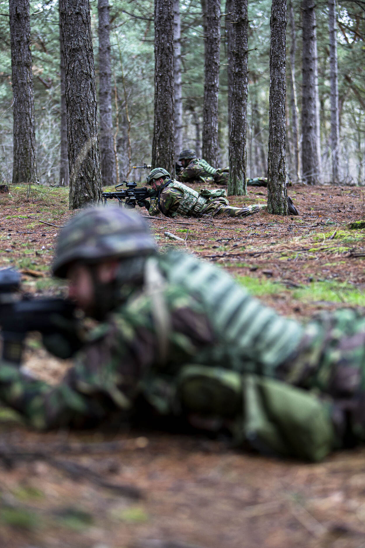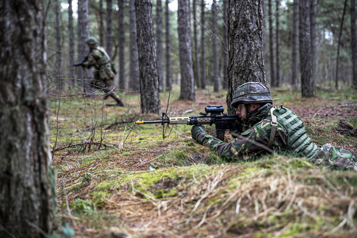 De 35 reservisten bereiden zich op de Oirschotse Heide voor op hun missie naar Erbil. Vanaf september maken zij deel uit van de Force Protection-compagnie die de internationale Iraakse luchthaven beveiligt. “Deze 3 groepen zijn 15 februari opgekomen”, vertelt eerste luitenant Rachelle van den Brink. “Eerst lag de focus op de MBV: iedereen is nu basisschutter op Colt, Glock en Minimi. Nu zijn we bezig met de contact drills, maandag gaan we formeren met 42 BVE.”