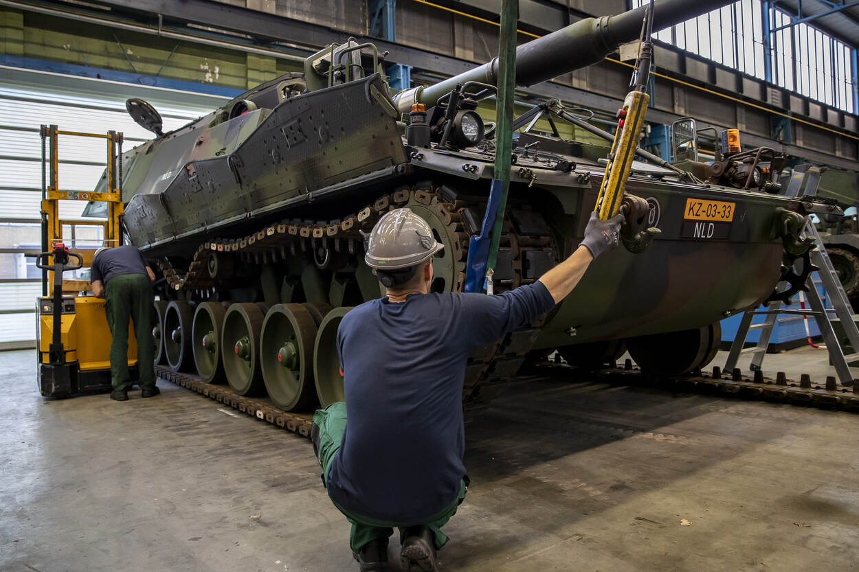 Van de 6 pantservoertuigen zijn er inmiddels 2 geleverd. Hier op archiefbeeld hoe het personeel het zware geschut voorbereidt op gebruik.