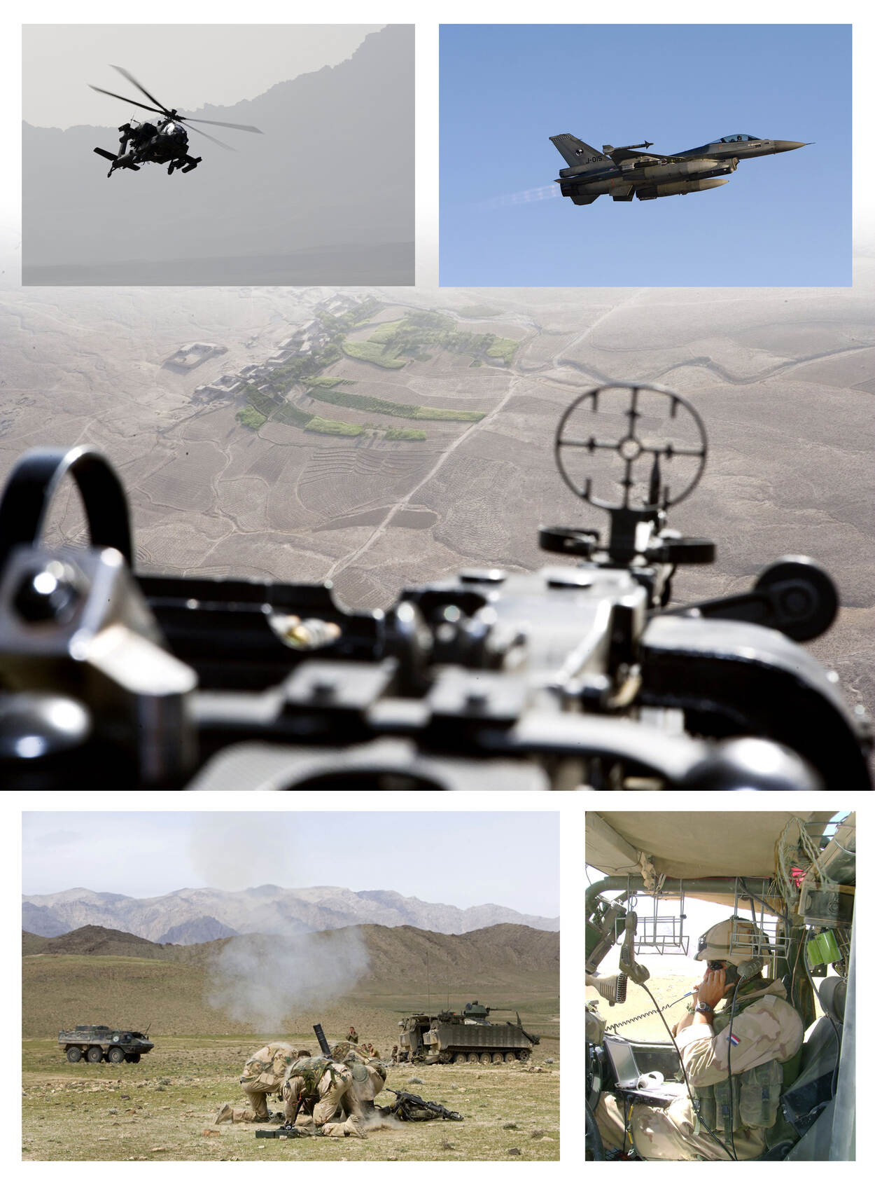 […] “Vrijwel direct na de aanval op de oostelijke politiepost Sarab werd duidelijk dat ook de 2 posten in het westen werden aangevallen. Rond 06.00 uur was de mortiergroep gereed om te vuren en kwam het bericht dat de Apache-gevechtshelikopters ter beschikking waren. Het peloton dat onderweg was naar de politiepost Niazi in het noordwesten van de Baluchivallei had al snel waarneming op de gevechten tussen Taliban en Afghan National Police. In de tussentijd had ik de ter beschikking gestelde Apaches ‘aan de lijn’ en via het compagniesnet kwamen de eerste vuuraanvragen binnen: afvuurlocaties van mortieren, quala’s van waaruit met machinegeweren werd geschoten, bergtoppen en heuvelruggen van waaruit scherpschutters en spotters het gevecht trachten te beïnvloeden.” […]