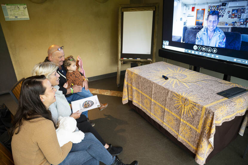 Het thuisfront zuigt alle indrukken van de dag op als een spons en vooral voor de kinderen is het een uitje van jewelste. Want hoe is het met ‘ome Jeroen’, wil neefje Tycho bezorgd weten. “Zitten jullie soms op de maan”, vraag hij tot hilariteit van de zaal. En zit Roelof wel klaar, vragen Ferdi en Sarah zich wat bezorgd af. Tot hun opluchting meldt hij zich snel. Ze willen graag van hem weten of het eten wel goed is daar. “Op woensdag hebben we kip, dat is altijd lekker”, klinkt het uit Erbil. Daar zit een grote Nederlandse club, maar hoe zit dat in Baghdad? “We proeven elke dag van andere landen. Maar de Italiaanse pizza-avond is wel het lekkerst.”