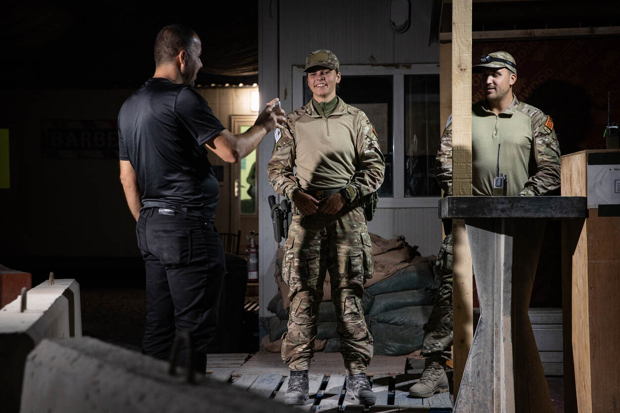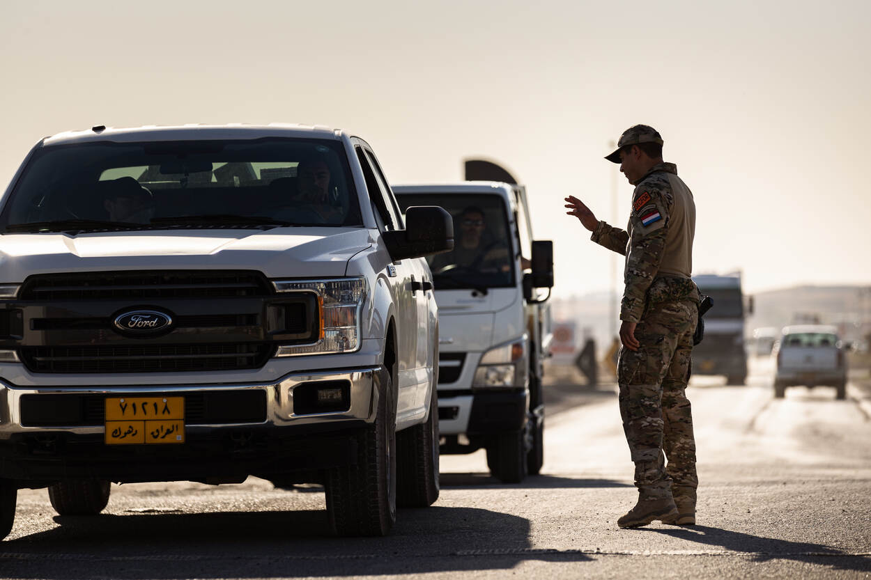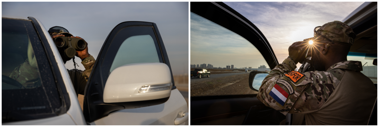 'COG, loud and clear, over'. Commander of Guard wachtmeester Alex doet de comms-check deze maanden honderden keren door zijn portofoon voor hij aan de patrouille begint. In een gepantserde Land Cruiser rijden hij en de chauffeur langs ‘route green’. Daar staan de sectieposten bemand door Nederlandse militairen. Zij beveiligen de basis tegen ongenode gasten: wie een valse of verlopen toegangspas heeft, komt er niet in. Het werk van de Nederlanders is een kleine schakel in de Capacity Building Mission Iraq (CBMI), de anti-ISIS coalitie. “Klein, maar ontzettend belangrijk. Door onze bewakings- en beveiligingstaken kunnen de collega’s achter de hekken veilig hun werk doen”, vertelt Alex.