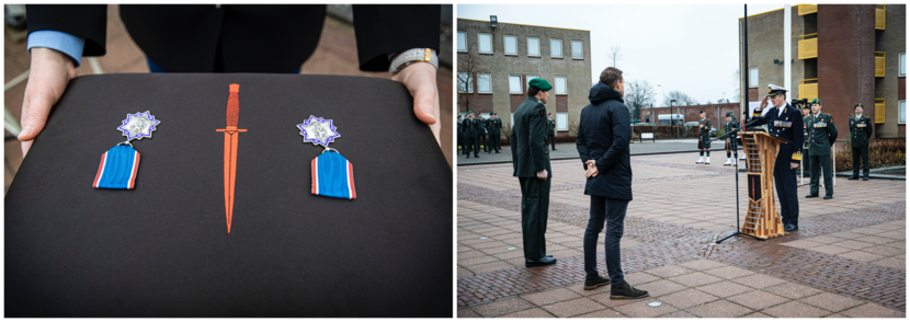 Ze kregen het ereteken op hun kazerne in Roosendaal uit handen van Plaatsvervangend Commandant der Strijdkrachten viceadmiraal Boudewijn Boots. “Het overviel mij een beetje. Zes jaar na dato. Maar het is een mooi gebaar”, aldus Peter. Michiel vult aan: “Het voelt ook dubbel. De aanleiding is ontzettend naar, maar de onderscheiding heel eervol.”