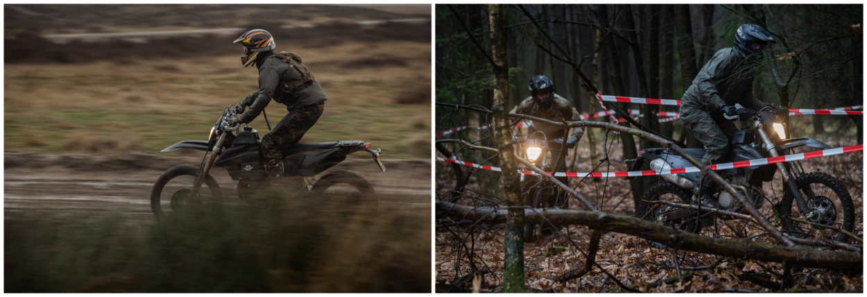 Vandaag doen naast vier 'luchtmobielers' ook drie man van het KCT en drie marechaussees mee. De commando’s zitten in een onderzoekstraject waarbij ze kijken hoe en welke motor in hun optreden past, terwijl de KMar regelmatig militaire oefenterreinen opgaat om ‘wildcrossers’ in de kraag te grijpen.