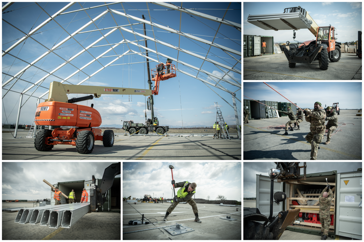 In deze tenten worden de F35's gestald die binnenkort vanuit Bulgarije hun NATO Air Policing-taken (bewaken en beveiligen van het luchtruim) gaan uitvoeren. De verwachting is dat de tenten in april gereed zijn voor gebruik. Naast het bouwen van de clamshells voeren de genisten overigens ook nog enkele andere constructiewerkzaamheden uit.