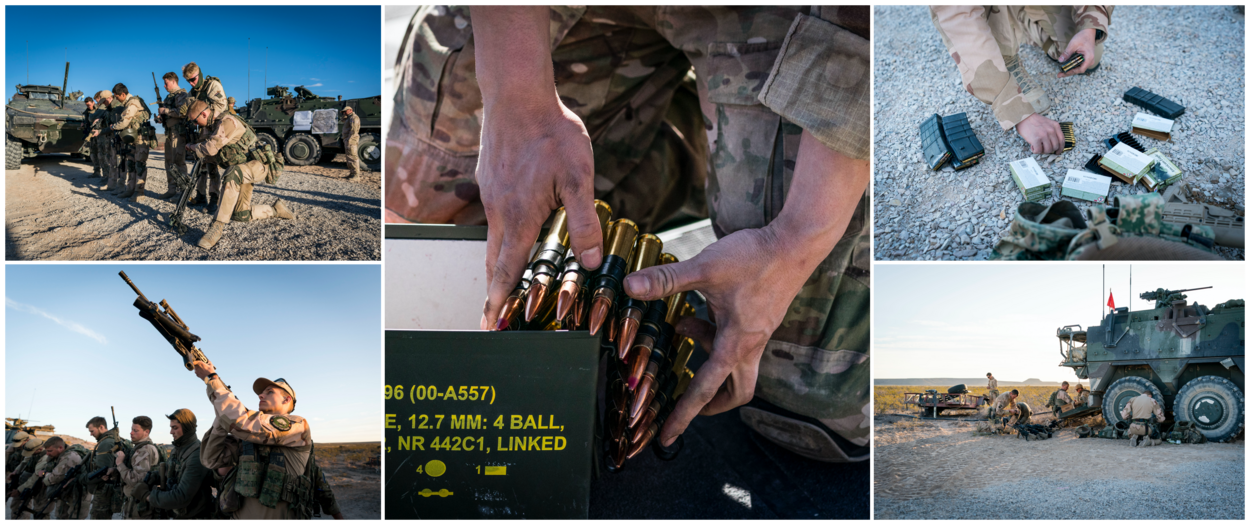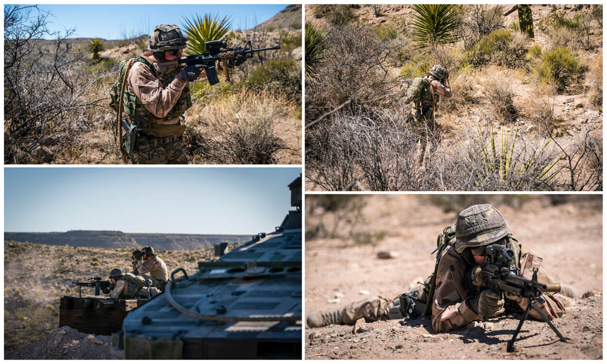 En de deelnemers zelf? Soldaat-1 Justin, al vier jaar ‘bij de club’ verwoordt dat het best. Hij mag als boordschutter ook met de FN Minimi aan de slag. “Best moeilijk om hier direct goed te richten. Het terrein op zich is niet alleen anders dan we gewend zijn, maar ook de kleuren. Het is top hier te oefenen. Mijn vrienden bij de infanterie zijn écht stikjaloers.”