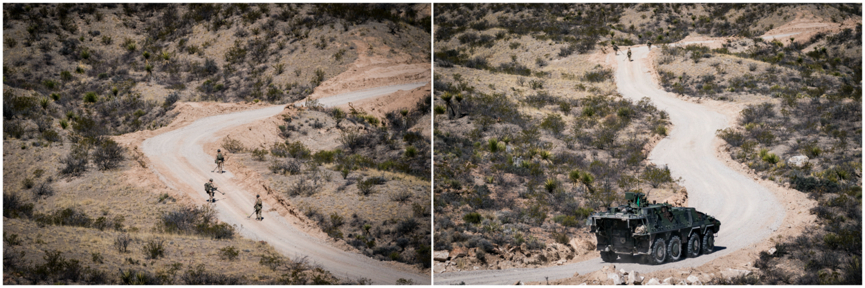 Niet alleen ‘explosieven’ op de weg of de vijand, in de vorm van snel opkomende doelen, vormen de tegenstander tijdens deze bijzondere training. Ook de omstandigheden: felle zon, snel stijgende temperaturen, struiken vol stekels en verraderlijk vriendelijk ogende cactussen zorgen voor een geheel nieuwe beleving voor de genisten. Het gebied biedt haast onbegrensde mogelijkheden om te oefenen en met scherp te schieten.