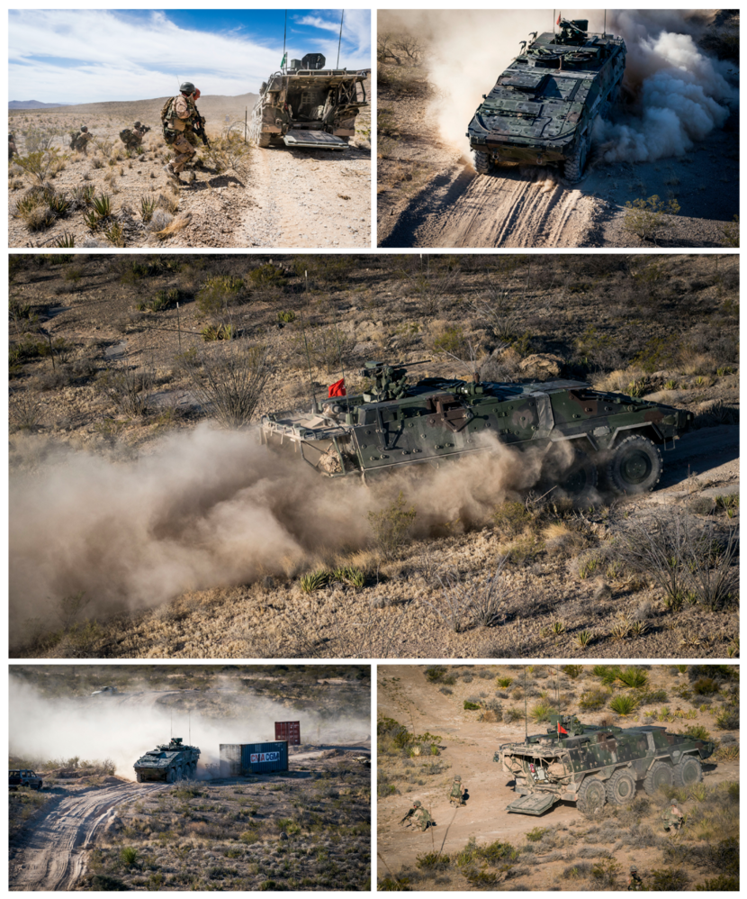 Terwijl de OH-6 helikopter over de hoofden scheert, melden twee van de vier Boxers-genie met een enorme stofwolk achter zich op de afspraak. De pantserwielvoertuigen zijn met nog twee Mercedes-Benzen, een ziekenauto en tien containers per boot de Atlantische Oceaan over gestoken.