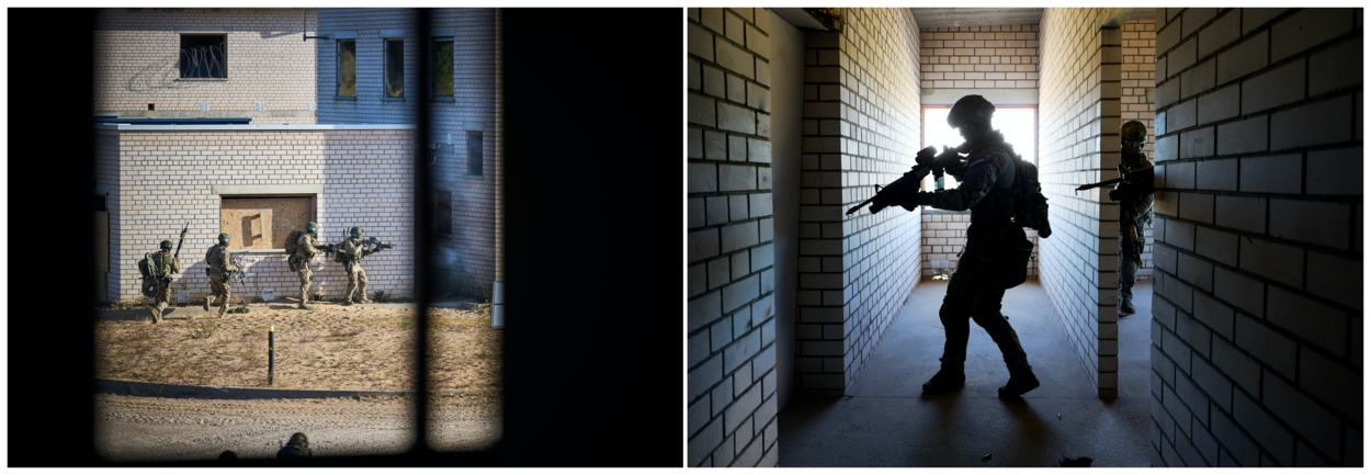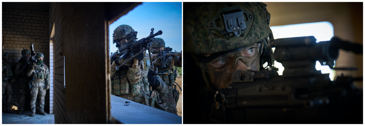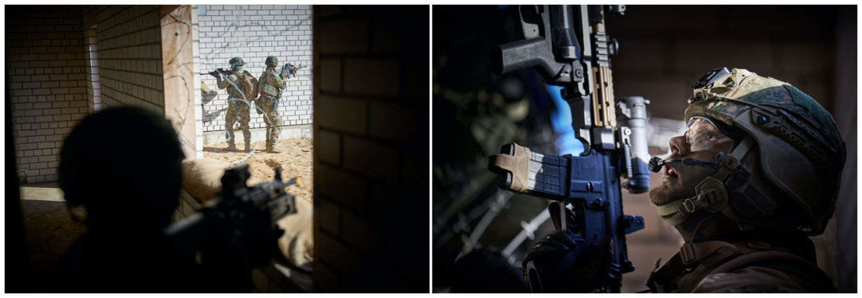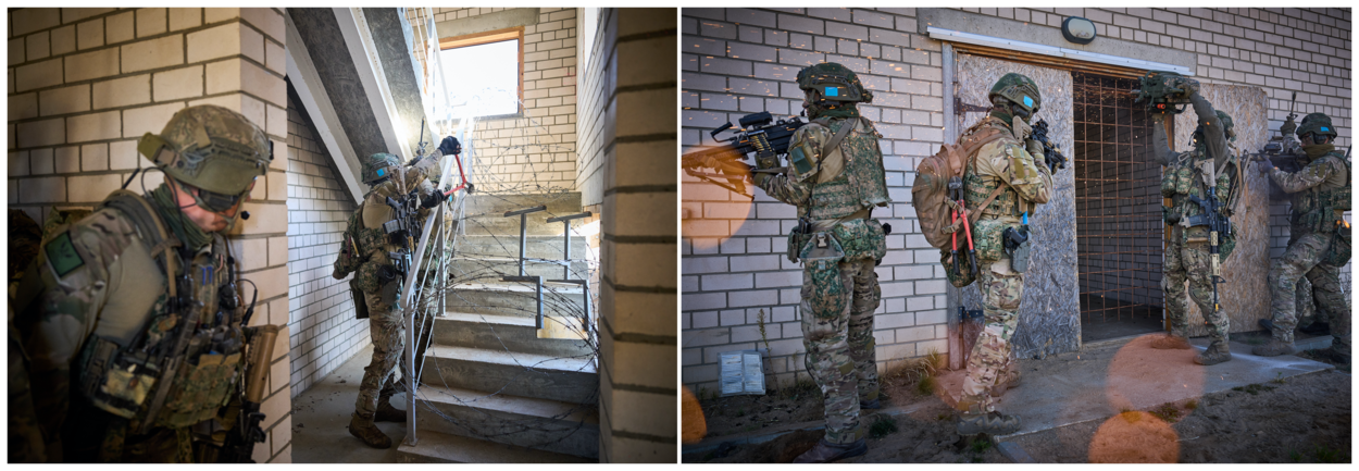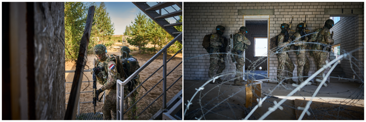Er is haast geboden, want er zijn 2 MIA’s: missing in action. De vijand houdt ze vast in een van de gebouwen van oefendorp Klein Vilnius. Aan dertig pantsergenisten de taak het target uit te schakelen en de vermisten te bevrijden. “Volle bak”, glimlacht opvolgend pelotonscommandant sergeant-1 Erik terwijl zijn kerels het gebouw binnendringen. “Wij zijn er om de mobiliteit in het gevecht te verzekeren. Hoe we hier trainen is verre van organiek. Normaliter zijn er een of twee pantsergenisten aangeklikt bij de infanterie bij het Optreden in Verstedelijkt Gebied (OVG). Nu focussen we op het losse pelotonsoptreden en hoe we optreden in het gevechtsveld.”