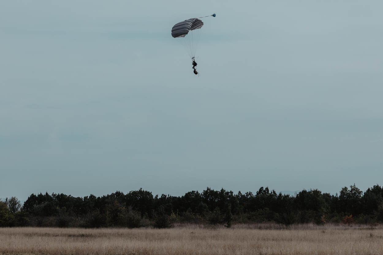 Een unieke sprong in het diepe. De pathfinders van 11 Luchtmobiele Brigade kwamen afgelopen maand Bulgarije binnen vanuit de lucht. Nooit eerder beoefenden de heimelijke verkenners de volledige keten van infiltratie. Daarbij sprongen ze met een ongeëvenaard gewicht.