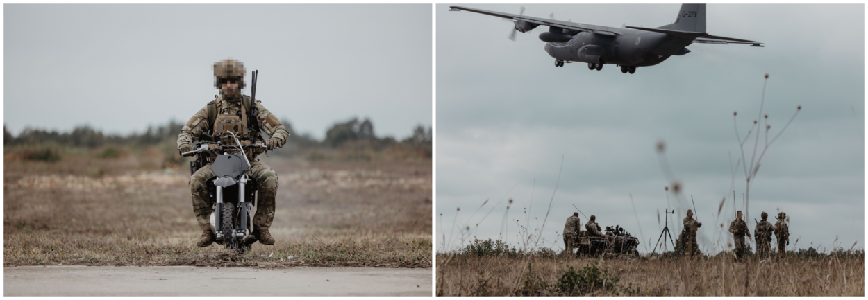 Om de mobiliteit over de honderden meterslange landing strip te versterken had het peloton ook voertuigen mee. “Zoals quads en elektrische vervoersmiddelen, zoals elektrische KTM’s. Met een blik op de toekomst.”
