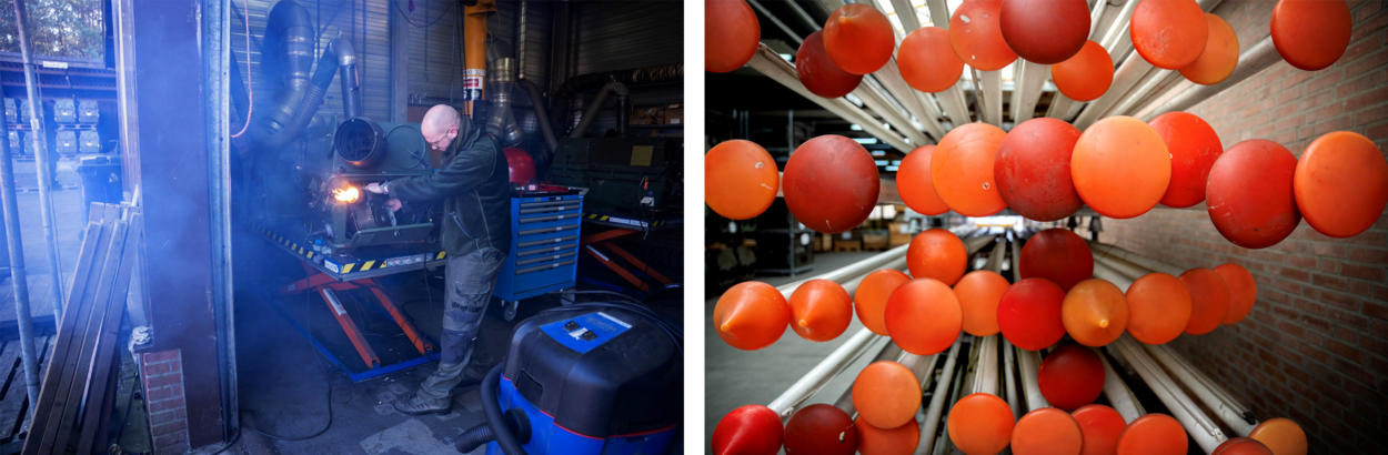 Links: Bij het DMPO hebben ze een omvangrijk aantal kachels in beheer. Rechts: Ook voor vlaggenmasten is de DMPO het aangewezen adres.