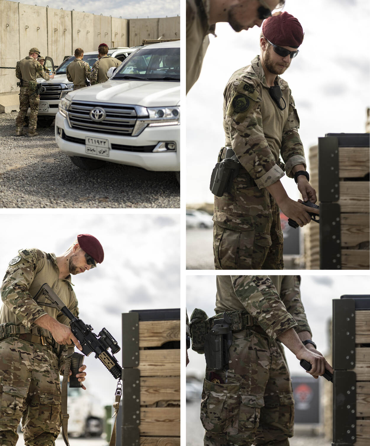 “Gelukkig kwam daar het een en ander bij”, verklaart kapitein Jeffrey op Camp Bulldog boven het gebulder van twee landende Blackhawks uit. Naast de beveiliging van Erbil Air Base staan we standby als Quick Reaction Force (QRF) en – wat mijn ‘Demonen’ het mooiste vinden – brengen we militaire adviseurs veilig naar hun afspraken in de regio.” (zie repo onderaan, red.)