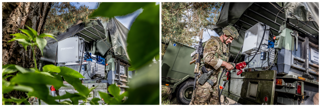 Gerben Seevinck is programmamanager Energietransitie en vertelt: “We begonnen dit experiment met een civiele aanhanger waar we een grote batterij, een soort accu, op zetten. Snel kwamen we erachter dat zoiets er op een betonnen plaat mooi uitziet, maar dat je in het veld iets moet hebben dat veel robuuster is. Want dat is altijd waar het bij ons om draait, hè: zoveel mogelijk voordelen zoeken voor de mannen en vrouwen die de operatie uitvoeren. Nou, stap twee was snel gezet. Geen civiel aanhangertje maar een militaire aanhanger die probleemloos achter een viertonner kon worden gezet. Hop, kon zo mee het veld in."
