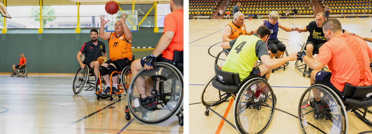 "Als individu met boogschieten, en rolstoelbasketbal omdat ik ook in een team wilde sporten. Ik zie de complete selectie als een compagnie, en de basketballers als mijn peloton. Moeilijk hoor trouwens, dat basketballen. In een rolstoel ben ik echt een stijve hark. Maar… ik ben allang blij dat ik de bal inmiddels dribbelend mee kan nemen. Wat overigens extra leuk is, is dat we samen met Duitsland 1 team vormen."