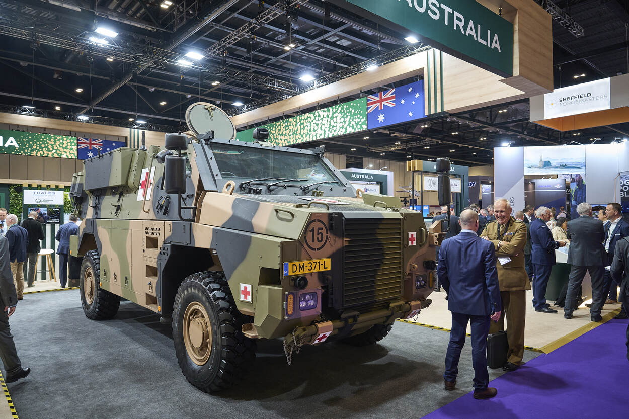 En de Nederlandse industrie dan? Die was aanwezig met een tiental bedrijven op een grote stand. Maar het mooiste ‘oranje’ tintje was misschien wel te zien in de hal van de Australische Defensie-industrie: een Bushmaster met gele kentekenplaten. “Het was logistiek gezien gemakkelijker om ‘m over de Noordzee te vervoeren dan vanuit Australië”, meldt luitenant-kolonel Colin Morrisson lachend. Serieus: “We zijn inmiddels toe aan de vijfde generatie van dit voertuig, dat vele levens heeft gered. Nieuw-Zeeland en Fiji hebben ‘m net besteld en jullie krijgen deze nieuwe versie nu ook.”