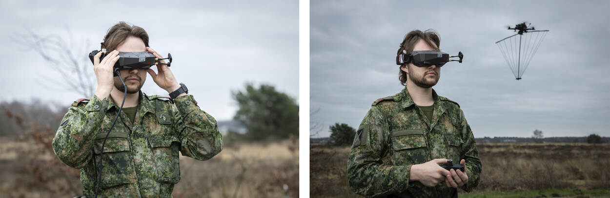Hoofd C-UAS Nijkamp vergelijkt het besturen van de Griffon met een computerspel, wat de jonge kanonnier beaamt. “Het is net of ik zelf vlieg”, stelt Glenn. Belangrijk is volgens de overste dat de systemen ook niet te complex zijn om aan te leren. In de 'beweeglijke wereld van drones’ is er namelijk zo weer een nieuwe uitvinding op de markt.