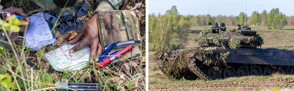 De Duitse oefenvijand legde de Nederlanders het vuur aan de schenen met verschillende prikacties. Waar de Nederlanders met CDI’s, Fenneks en Boxers voortbewegen, gebruikte de opponent infanteriegevechtsvoertuigen als Wiesels, Marders en meerdere Leopards. Dat vereist niet alleen snel schakelen in het besluitvormingsproces, maar betekent ook rap schuiven voor de eenheden, die als pionnen op een schaakbord door het oefengebied werden bewogen. “Telkens moesten we het zwaartepunt verleggen. Eenheden een stelling laten innemen om daarna, onder vijanddruk, snel ergens anders naartoe te manoeuvreren in het gevecht om het gewenste effect te bereiken. De leercurve is steil.”