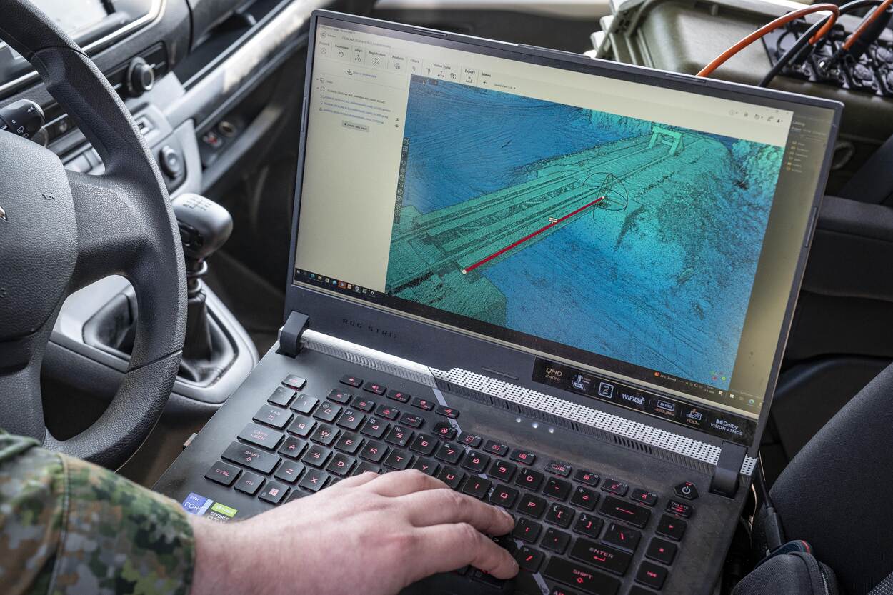 Met de scans kan dus een terrein in beeld gebracht worden zodat eenheden weten wat hen te wachten staat. Wat voor ondergrond ligt er, hoe hoog zijn eventuele heuvels, waar liggen ze precies, maar ook welke objecten, zoals bruggen en obstakels liggen er? Kot neemt de brug als voorbeeld. “Als deze beschadigd is, kunnen we dankzij de info van de scan bepalen hoeveel gewicht hij nog kan hebben. We hebben immers alles in beeld, van constructie tot betondikte. Zo maken we een berekening over hoeveel zo’n brug nog kan hebben. Dit bepaalt uiteindelijk óf je erover heen gaat en hoe. Moet het voertuig voor voertuig, of kan het met 4 tegelijk?”