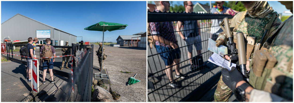 Dit gebeurt bij iedereen, zonder uitzonderingen. Ook niet voor Hans, nota bene oud-commandant van het Korps Commandotroepen. “Ik ben overvallen in mijn eigen huis en heb geschoten”, bekent hij aan de poort. Bij navraag blijkt hij een geladen Glock in zijn bagage te hebben. Een zogenoemde search levert nog 2 messen op. Die mogen niet mee aan boord. Hij is niet de enige oud-commando die in het rollenspel zit. Steven en Rob, beiden oud-dienstplichtig commando en nu werkzaam bij het Commando Materieel en IT, bieden graag steun. “Er is een oproep gedaan bij onze Commandovereniging. Het leek ons leuk, maar ook goed om deze oefening van onze kameraden te steunen”, zegt Steven, vlak voordat hij per vliegtuig wordt geëvacueerd. 6 uur nadat de eerste commando’s zijn geland gaat de eerste groep Nederlanders op weg naar de FOB op Twente Airport.