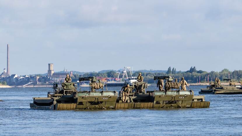 Ruim 1.000 militairen uit Duitsland, Groot-Brittannië, Italië en Nederland hebben afgelopen weekeinde een tijdelijke militaire veerdienst opgezet over de Rijn. Deze internationale River Crossing Operation was nabij het Duitse Emmerich, vlak over de grens bij Lobith.