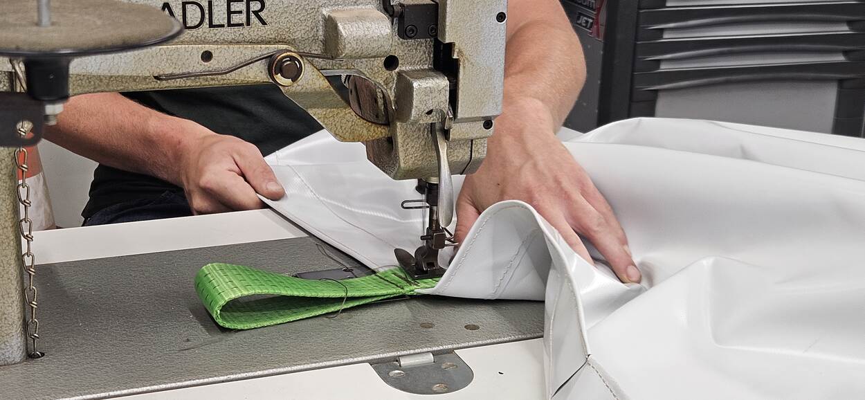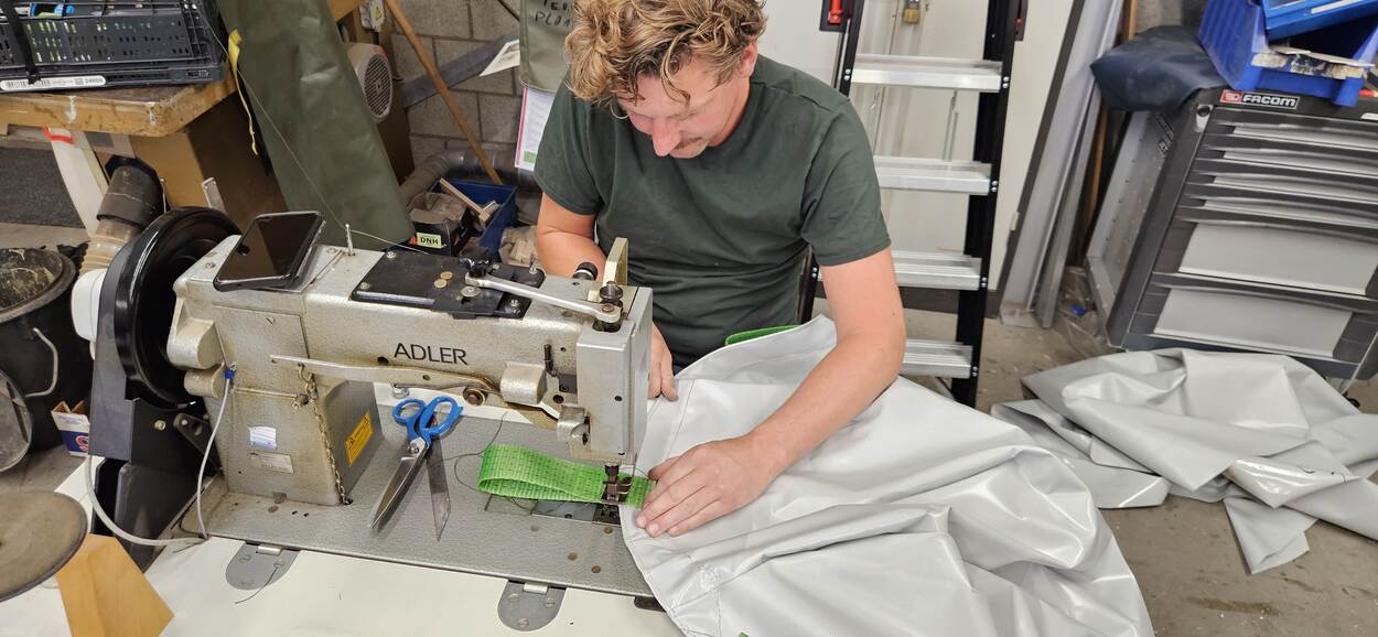 Een specialist maakt een koelzeil.