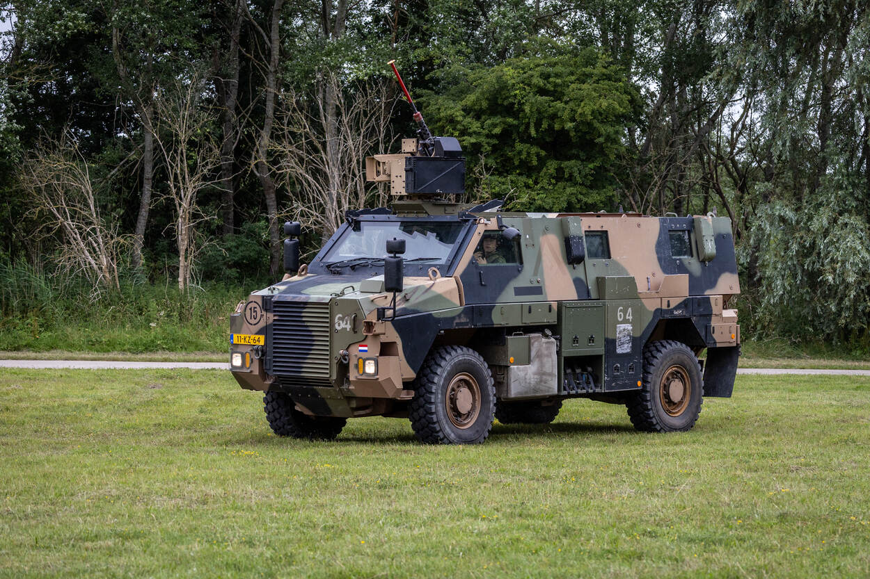 Met daarbij een voor de luchtmobiele brigade atypisch (pantser)voertuig: de Bushmaster. Speciaal voor deze missie heeft een aantal ‘Bravo’s’ de chauffeursopleiding in Oirschot gehad en zijn schutters op de .50 getraind. “Tijdens een schietoefening in Bergen (Duitsland) hebben we daadwerkelijk met dat zware wapen geschoten”, vertelt schutter soldaat-1 Allard. “Dat is voor ons wel even wat anders, want we zijn gewend met onze rugzak en persoonlijk wapen op pad te gaan. Maar het is hartstikke leuk om eens wat anders te doen. Dat geldt ook voor mijn chauffeur. We zijn na de opleiding meteen gaan zitten om samen een plan te trekken. Dat werkt goed.”
