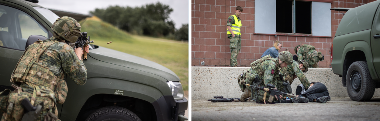 “Eens kijken hoe ze op al die actie reageren”, zegt kapitein Bernhard tegen zijn adjudant Bas. Beiden zijn verantwoordelijk voor het scenario, waarbij de onderofficier met uitzendingen (als marinier) naar Cambodja (1993) en later enkele malen Bosnië het meest uit eigen ervaring kan putten.
