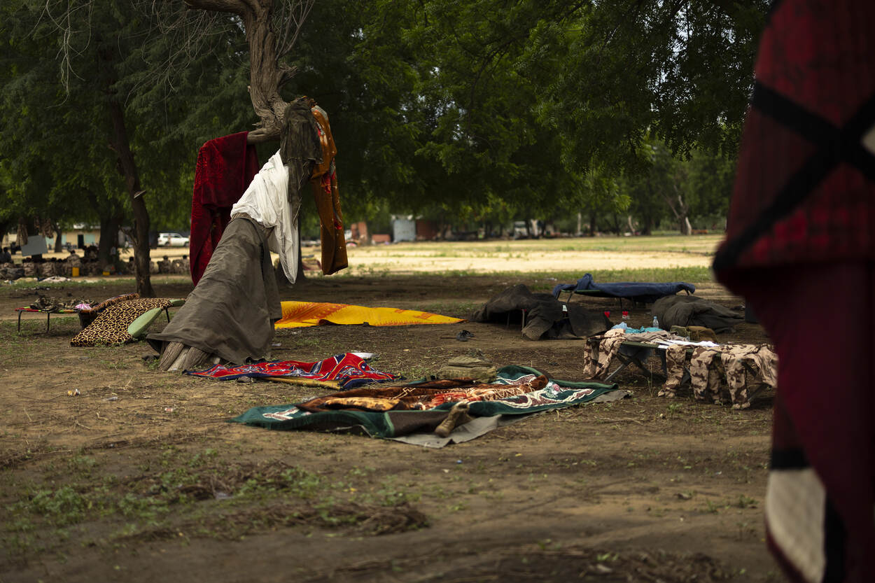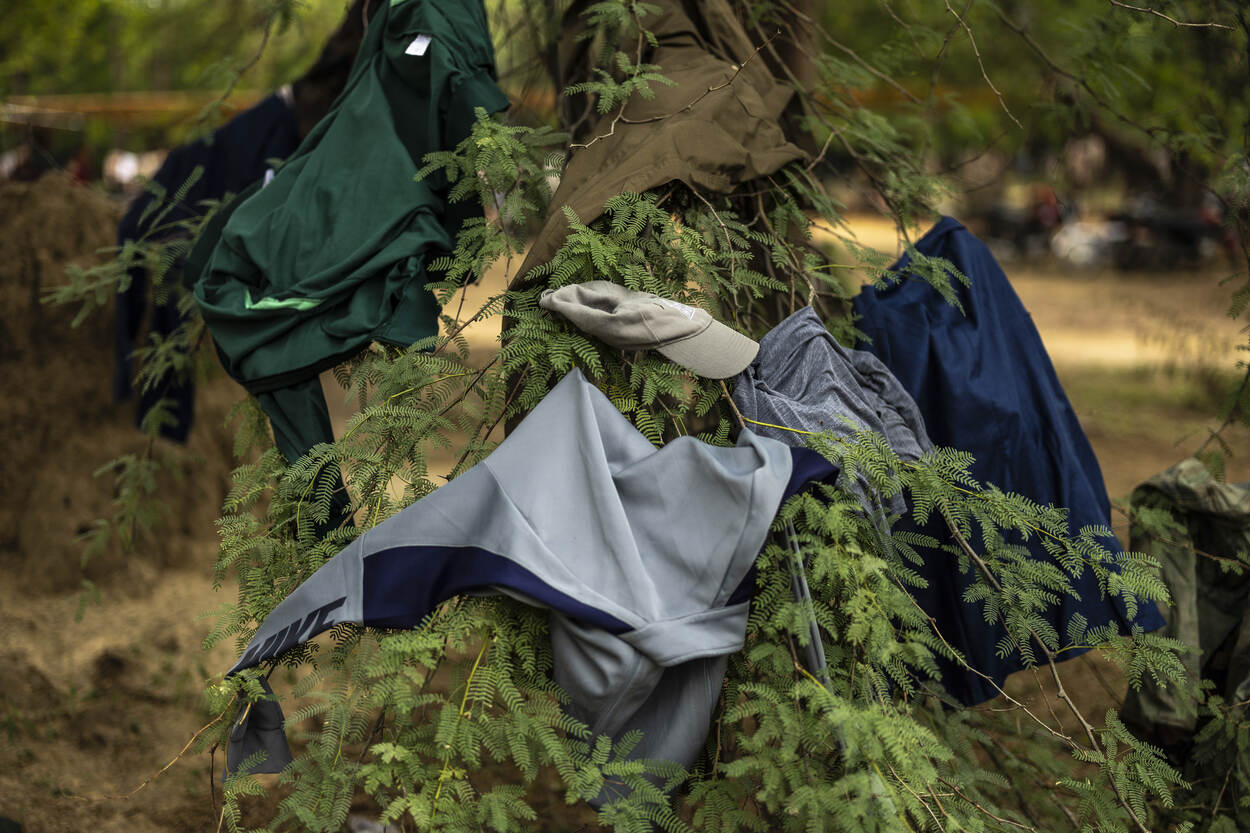 Spullen van de Tsjadische militairen liggen te drogen.