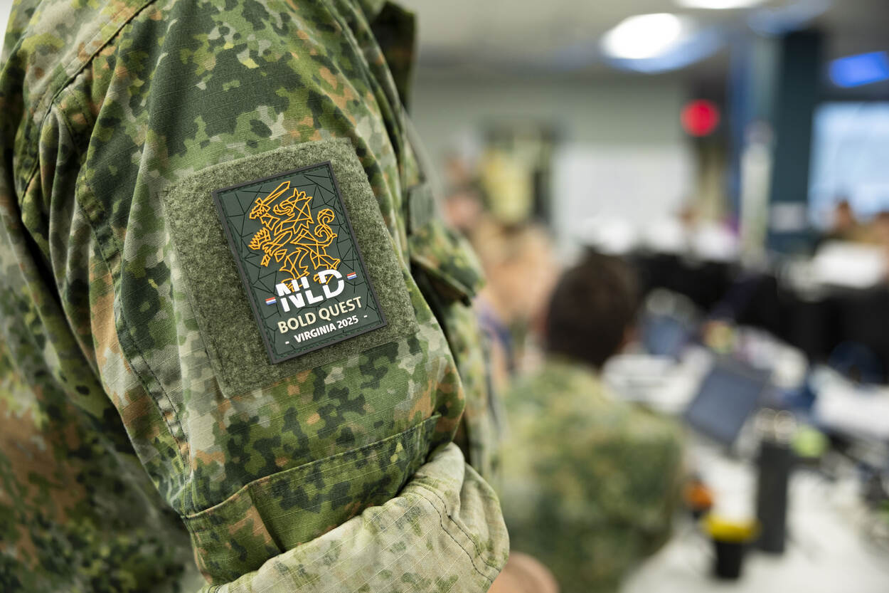 Logo van Bold Quest op de mouw van een Nederlandse militair.