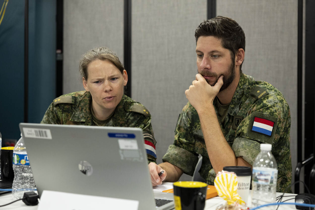 Tijdens Bold Quest 2025 draait Roubos’ team een scenario waarbij 2 fictieve landen in de Indo-Pacific in oorlog geraken. “Het zijn fictieve landen, maar het lijkt heel erg op Zuid-Korea tegen Noord-Korea, waarbij China die laatste steunt. Een heel realistisch scenario, zeker voor de Amerikanen met hun focus op Taiwan”, aldus de overste.